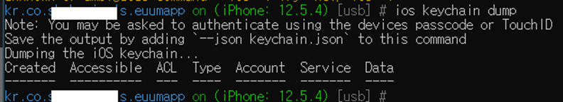 - Keychain에 저장된 데이터는 암호화가 되지 않기 때문에 명령 실행으로 keychain 내 데이터를 평문으로 확인 가능